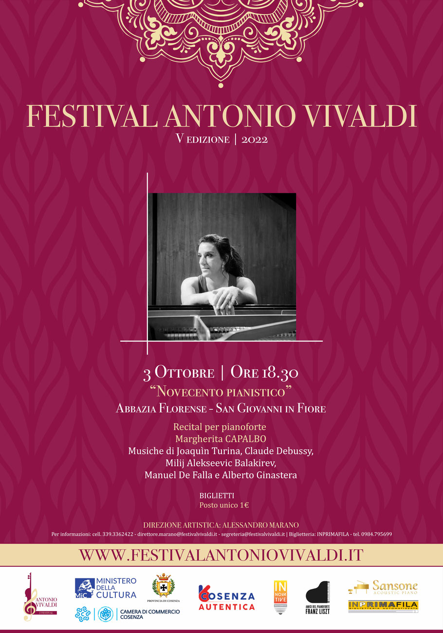 Margherita Capalbo, brillante pianista cosentina, consegue gli studi pianistici presso il Conservatorio di musica di Cosenza dove si diploma con lode sotto la guida del M° Calvelli Antonella. Dopo un periodo di studio presso il Conservatoire Royal de Bruxelles, sotto la guida di Evgeny Moguilevsky, Alexander Moguilevsky ed Olga Roumcevich, prosegue presso la Scuola di musica di Fiesole con il M° Lucchesini. Sin da giovanissima ha intrapreso l’attività concertistica sia in veste di solista sia in formazione cameristica, riscuotendo grande apprezzamento di pubblico e critica. Ha ottenuto premi e riconoscimenti in più di quaranta concorsi nazionali ed internazionali. Tra i successi ricordiamo: vincitrice della II edizione dei premi Ugo Adamo (Conservatorio di Cosenza) nella sezione “Assegno di ricerca”, Aprile 2013; Primo premio al Concorso pianistico “Giulio Rospigliosi” di Lamporecchio (Pistoia) (Marzo 2013), Primo premio al 17° Concorso internazionale “Luigi Padano”, nell’ambito del quale ha ricevuto anche il premio speciale per la migliore interpretazione del repertorio del XX Secolo (Maggio 2013); ed ancora il Primo premio al primo Concorso pianistico internazionale Di San Donà di Piave- Venezia ( Maggio 2013), Mention especial con honores all’ Ibiza Piano Competition ( Settembre 2013), Secondo premio con primo non assegnato al 20° Concorso “Franz Schubert” di San Cristoforo ( Al) Ottobre 2013, Finalista al Premio delle Arti Ottobre 2013, Vincitrice del Premio della giuria e del pubblico alla II Edizione del Premio pianistico “Maria Quintieri” presso il Teatro Rendano di Cosenza, Ottobre 2013; Primo premio al 26° Concorso pianistico internazionale di Albenga ( Sv), Dicembre 2013, III premio al IV Concorso “ Luciano Lucani” ( maggio 2014), premio speciale “ Albano” al 52° Concorso “Arcangelo Speranza” (Maggio 2014), finalista al Concorso pianistico di Osimo 2014; secondo premio all’ International Music Competition Salzburg Grand Prize Virtuoso 2016. Recentemente ha vinto il secondo premio al concorso Crescendo di Firenze e al premio pianistico “ Clivis” di Roma ( 2018), Primo premio Premio di Intepretazione pianistica “ Lia Tortora” 2019. Alla sua formazione musicale e pianistica in particolare hanno contribuito incontri con pianisti di chiara fama come: Orazio Maione e Boris Slutsky ( International Music Academy 2008), Franco Medori e Boris Petrushansky ( Corsi di perfezionamento “ Musica Reservata” 2006- 2008), Michele Campanella (Master di perfezionamento pianistico “ Centro studi Vitale” presso l’Università Suor Orsola Benincasa di Napoli, Accademia musicale Chigiana 2009, dove le viene assegnata una borsa di studio riservata ai migliori allievi dell’accademia), Edith Murano, Michele Marvulli, Annamaria Pennella, Antonio Pompa-Baldi (Master D’Estate Associazione Napolinova 2010), Bruno Canino e Sergio Perticaroli, Boris Bektherev. Particolarmente significativi per il suo percorso pianistico sono stati gli incontri con i pianisti Giuseppe Maiorca e Cristiano Burato con i quali ha approfondito lo studio del repertorio pianistico. Svolge regolarmente attività concertistica da solista e in formazione cameristica. Si è esibita in importanti sale da concerto e per importanti festival sia in Italia che all’estero: Auditorium Conservatoire Royal de Bruxelles, Festival Napolinova - Sala Chopin Palazzo Mastelloni, Estate Chigiana - Palazzo Chigi Saracini Sala Micat in Vertice ( Siena), Pomeriggi in concerto “ Città di Napoli”- Biblioteca Nazionale di Napoli, II Festival Pianistico Internazionale di Castrolibero- Auditorium G. Paolo II , XI Festival Pianistico Internazionale Città di Taranto- Wine Art Gallery, Sala Sinopoli- Villa la Torraccia Fiesole (Firenze) , Teatro Rendano di Cosenza, Teatro Paisiello di Lecce, Villa Rufolo per il Ravello Festival, Teatro della Cooperativa di Milano, Casa della Musica di Cosenza; Stagione concertistica Villa Loredan Franchin di Ceggia ( Venezia); Stagione concertistica Fausto Zadra, Abano Terme (Padova); Stagione concertistica San Donà di Piave ( Venezia); Ravello Concert Society- Villa Rufolo Ravello ( Salerno), Ass. Maurizio Quintieri- Teatro Alfonso Rendano di Cosenza, Stagione Concertistica Conservatorio di Reggio Emilia, Istituto di Cultura Italiana- Bruxelles (Belgio) , Piano plus Festival Atene ( Grecia), Ionian University di Corfù. All’attività concertistica dal 2013 affianca quella didattica e di ricerca nel campo dell'apprendimento. Già docente titolare presso il Liceo Musicale di Cosenza “ Lucrezia della Valle”, attualmente insegna presso il Conservatorio Fausto Torrefranca di Vibo Valentia.