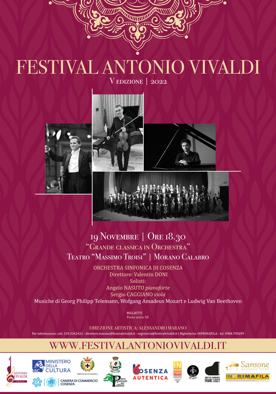 Sergio Caggiano - Si è diplomato brillantemente in viola al Conservatorio di Musica "G. Martucci" di Salerno, sotto la guida del M° Ettore Belli, conseguendo successivamente il Diploma Accademico di Secondo Livello in musica da camera. Si è laureato in Management d' Impresa Culturale e dello Spettacolo. Nel ruolo di violista ha partecipato in diversi gruppi da camera e si è esibito come solista in Italia e all'estero. In ambito orchestrale tra le orchestre più prestigiose si segnalano le collaborazioni con l'Orchestra "LaVerdi" di Milano. Si è perfezionato all' Accademia Chigiana con il M° Yury Bashmet, all'Accademia della viola di Rimini con il M° Fabrizio Merlini, al Conservatorio della Svizzera Italiana sotto la guida del M° Danilo Rossi Prima viola e solista della Scala di Milano, al Milano Music MasterSchool con Simonide Braconi Prima viola del Teatro alla Scala di Milano. Ha frequentato i corsi estivi tenuti dai violisti Antonio Bossone (Prima viola del teatro San Carlo di Napoli), Raffaele Mallozzi (Prima viola dell'Accademia Nazionale di Santa Cecilia) e Karin Wolf. Nel continente asiatico si è esibito in Giappone, in Azerbaijan e più di recente a Taiyuan (Cina), riscuotendo il favore di pubblico e critica. Attualmente ricopre il ruolo di violista nell'orchestra Filarmonica "Giuseppe Verdi" di Salerno sotto la guida del M° Daniel Oren. E' docente di viola e musica d'insieme presso il Liceo Musicale "Alfano I" di Salerno, il Liceo Musicale "M. Galdi" di Cava de' Tirreni e il Liceo "Perito-Levi" di Eboli. È Presidente e Direttore Artistico dell' "Associazione Culturale Arechi" di Salerno.