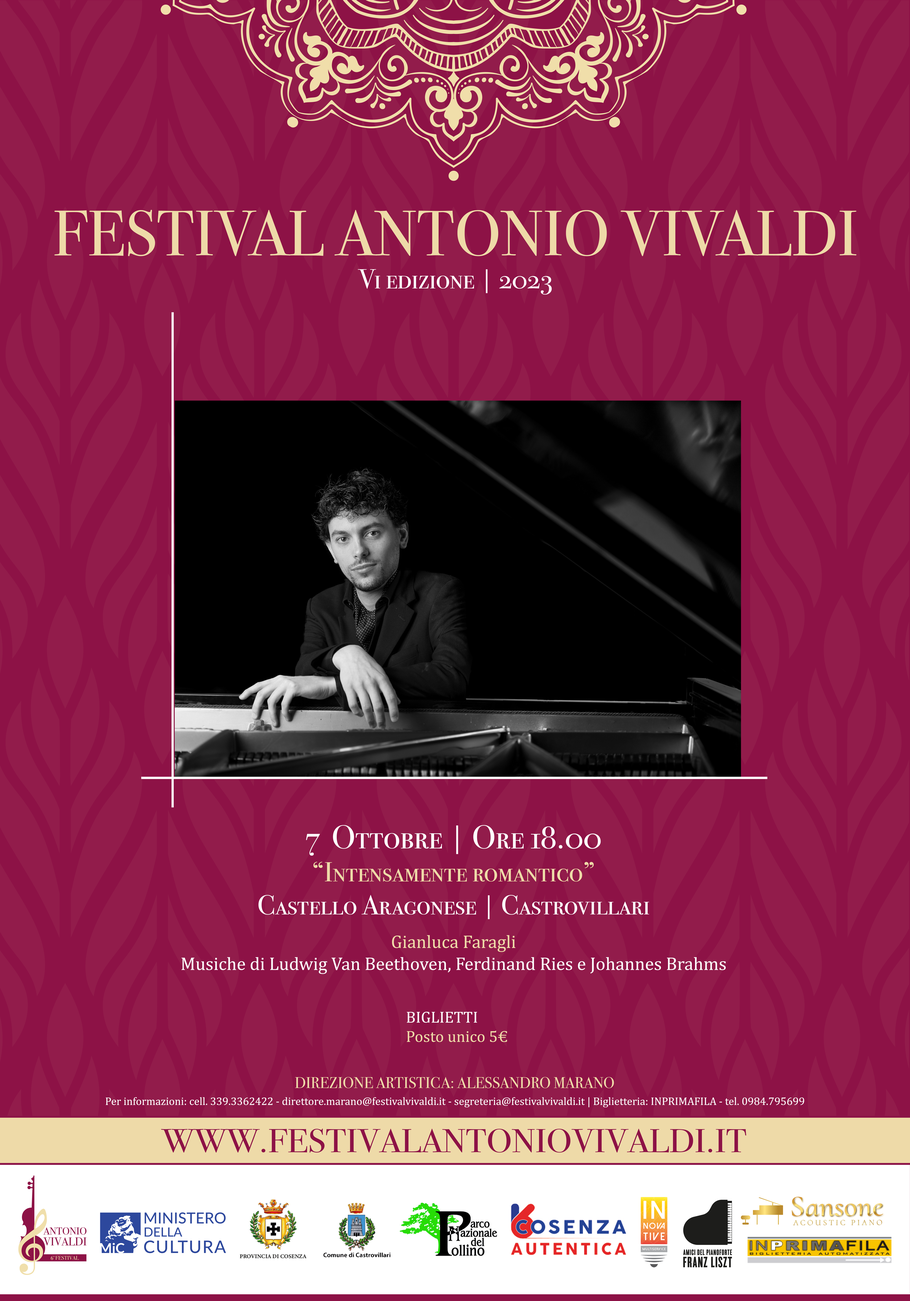 Gianluca Faragli si è diplomato in pianoforte con il massimo dei voti, lode e menzione d’onore presso il Conservatorio N. Paganini di Genova. Ha proseguito gli studi con Maria Grazia Bellocchio presso il Conservatorio G. Donizetti di Bergamo, dove ha conseguito il diploma accademico di secondo livello in pianoforte indirizzo solistico con il massimo dei voti. Attualmente sta frequentando il corso di alto perfezionamento pianistico presso l’Accademia di Musica di Pinerolo nella classe di Enrico Pace.