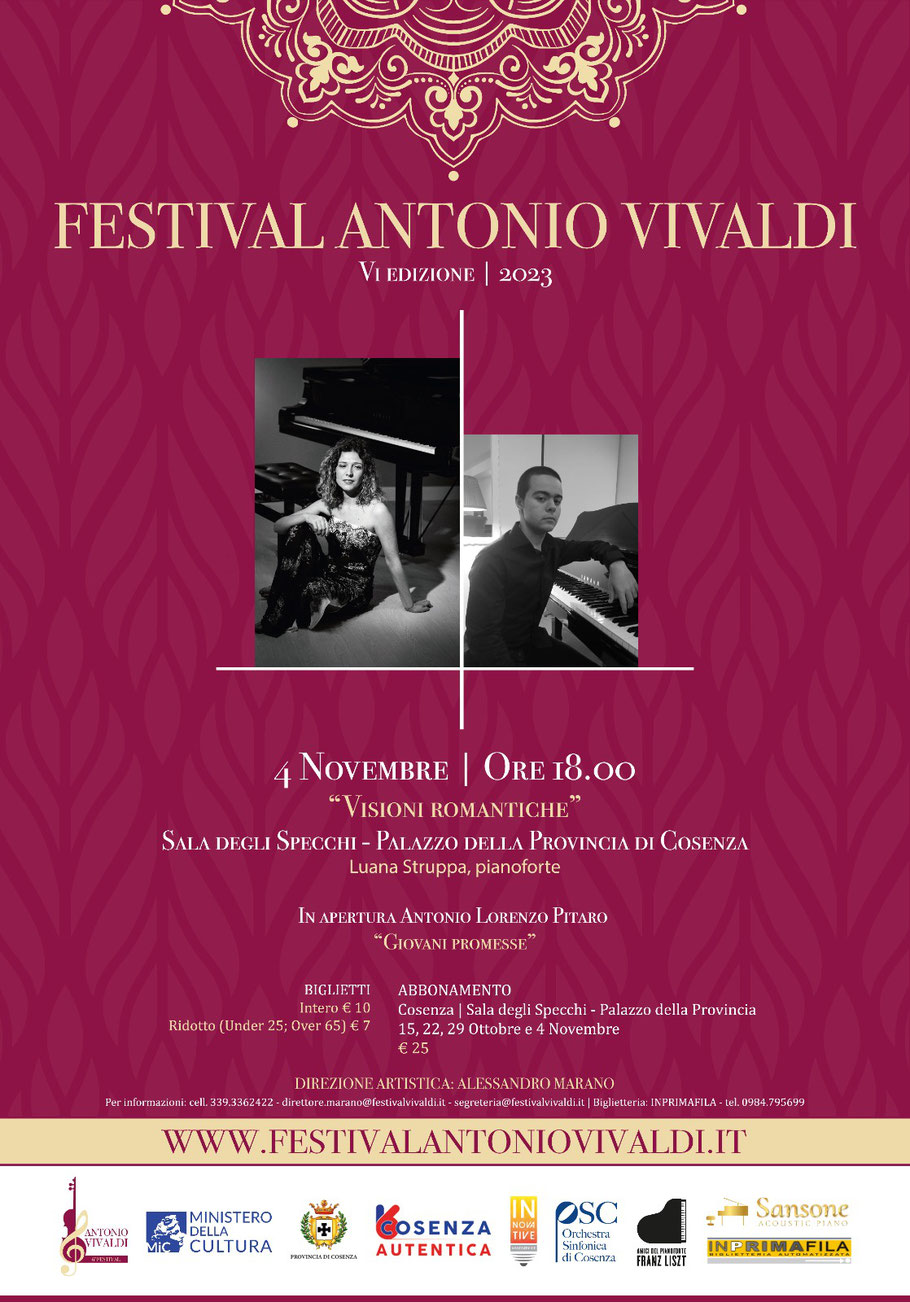 Luana Struppa inizia lo studio del pianoforte sotto la guida del M° Salvatore Spanò e consegue il Diploma presso il Conservatorio “G.B.Martini” di Bologna. In seguito si perfeziona presso l “Ecole Normale de Musique A.Cortot “ di Parigi, con la prof. Young Shin An, conseguendo nel 2002 il “ Diplome d’ Enseignement”. Nel 2005 ottiene l’Higher Education Diploma” in Pianoforte presso l’Hogheschool Von Music und Danse di Rotterdam (Olanda), con il M° Aquiles Delle Vigne, e nel 2006 il Diploma Triennale di Alto Perfezionamento sotto la guida dei M° Luigi Mostacci e Oliver Kern. Nel 2007 si laurea in Discipline Musicali. Ha partecipato a numerosi Concorsi Nazionali e Internazionali, fra essi ricordiamo: Concorso Internazionale “Città di Minerbio”, Concorso Nazionale “Città del Barocco” di Lecce, Concorso Nazionale “Città di Palermo”, Concorso Internazionale “Beethoven e i classici” di Paestum (Salerno), Concorso Internazionale “Terracciano” di Giffoni Sei Casali (Salerno), Concorso “Rospigliosi” di Lamporecchio, “Premio Zuccotti”, Firenze, Concorso “Città Piove Di Sacco” ecc.
