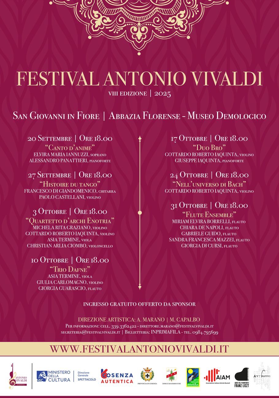Giovanni in Fiore, solisti e formazioni di vario genere daranno vita ad un cartellone speciale all'interno dell'ampio e variegato Festival.